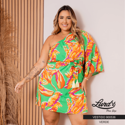 Vestido Plus Size Manga Curta Ref 900536 Estampa Verde