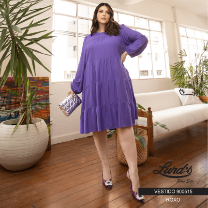 Vestido Plus Size Manga Longa Ref 900515 Roxo