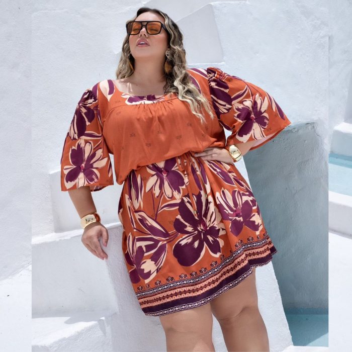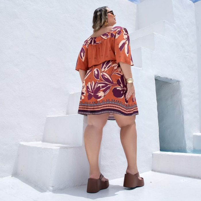 Vestido Plus Size Manga Curta 900748 Estampa Telha