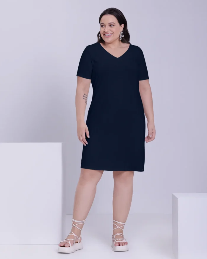 Vestido Plus Size Manga Curta Ref 00478 Marinho