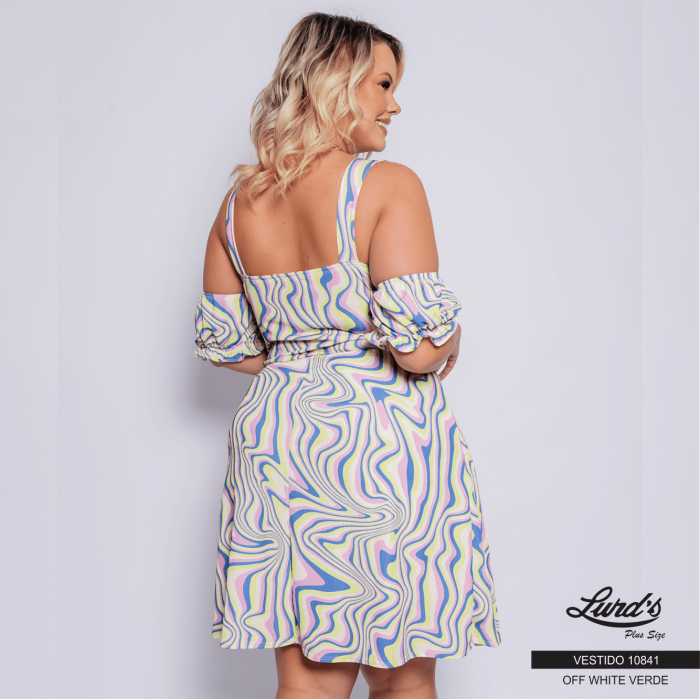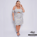Vestido Plus Size Manga Curta ref 10841 off white verde