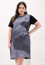 Vestido Mid Plus Size Manga Curta Estampa Areia