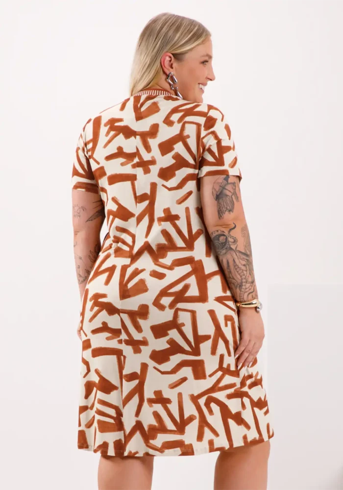 Vestido Plus Size Manga Curta Ref 69209 Bege Telha