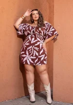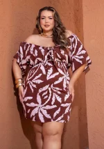 Vestido Plus Size Manga Curta Ref 900779 Marrom Rosa