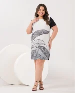 Vestido Plus Size Manga Curta Ref C0332 Estampa Preto