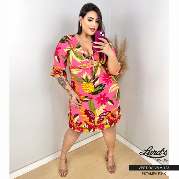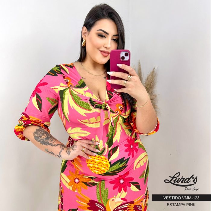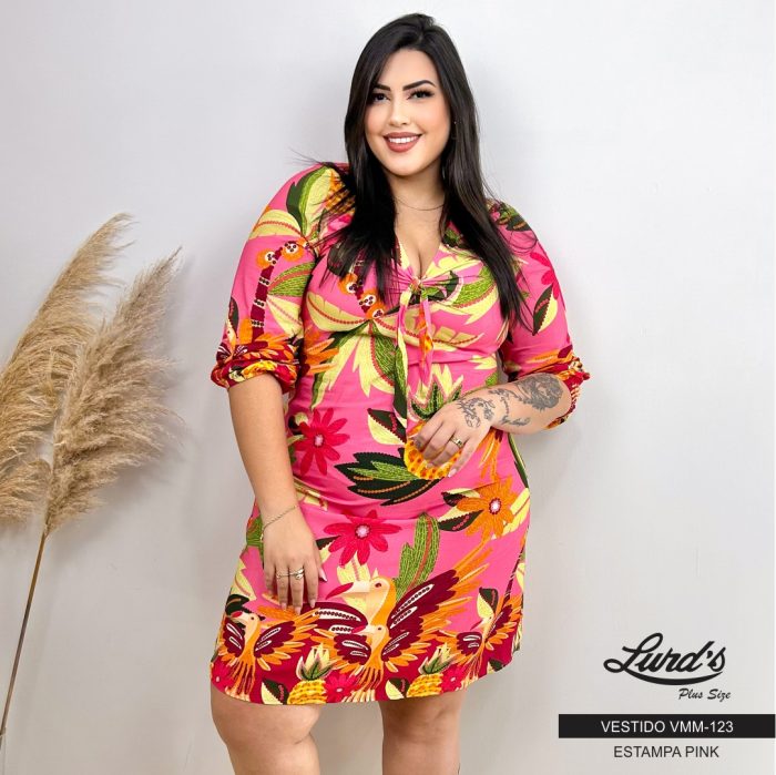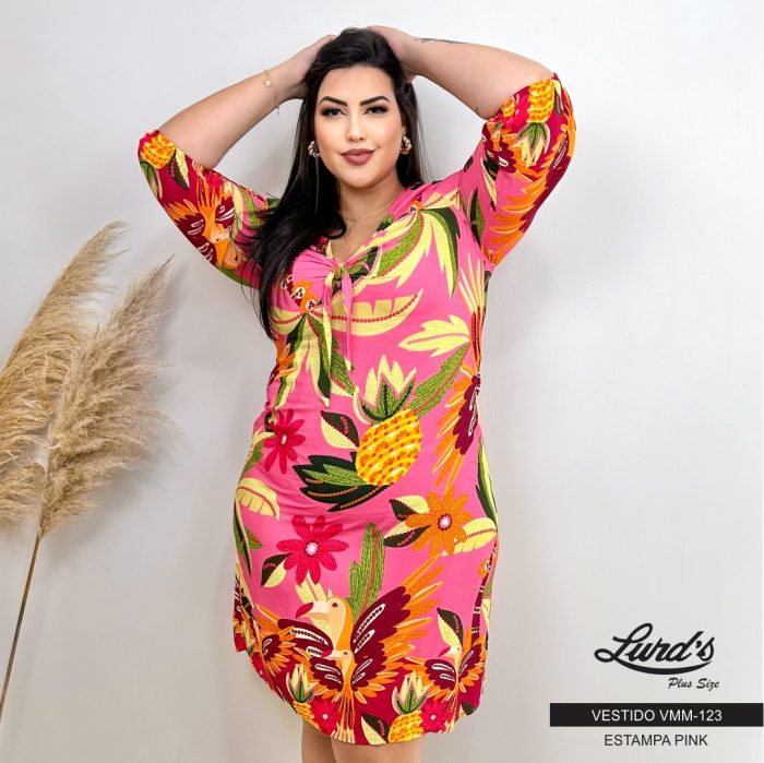 Vestido Plus Size Manga Curta VMM-123 Estampa Pink