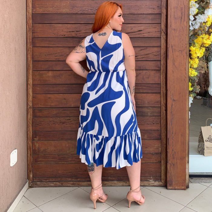 Vestido Plus Size Sem Manga Ref 26144 Estampa Azul