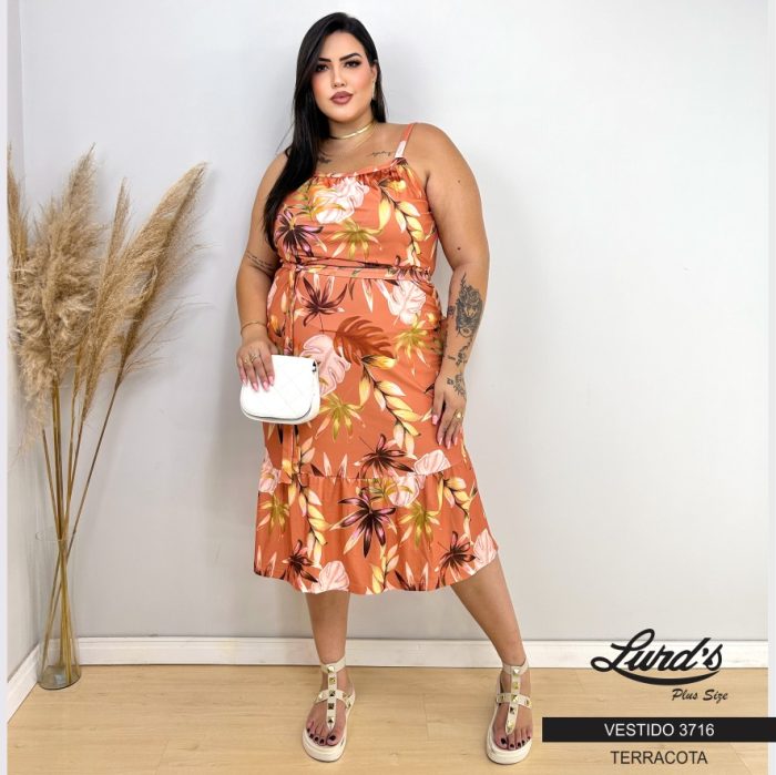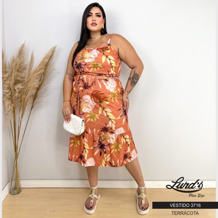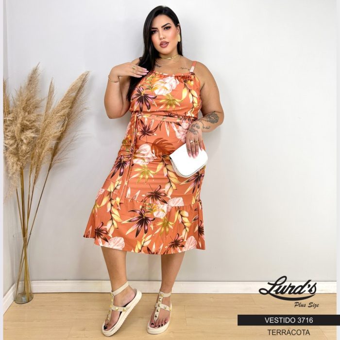 Vestido Plus Size Sem Manga Ref 3716 Terracota