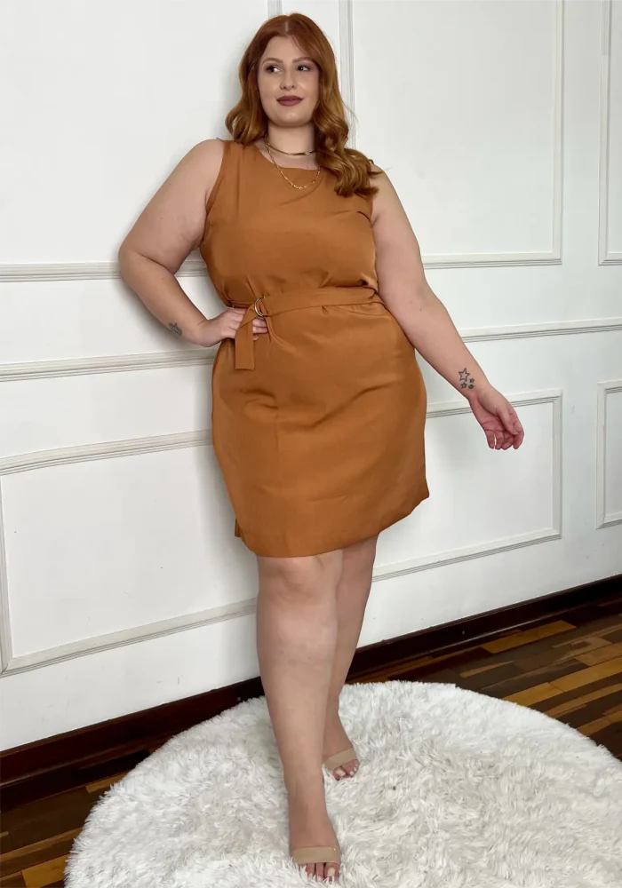 🧡 Vestido Sem Manga Plus Size – Ref. 207286 | Terracota